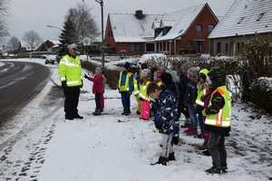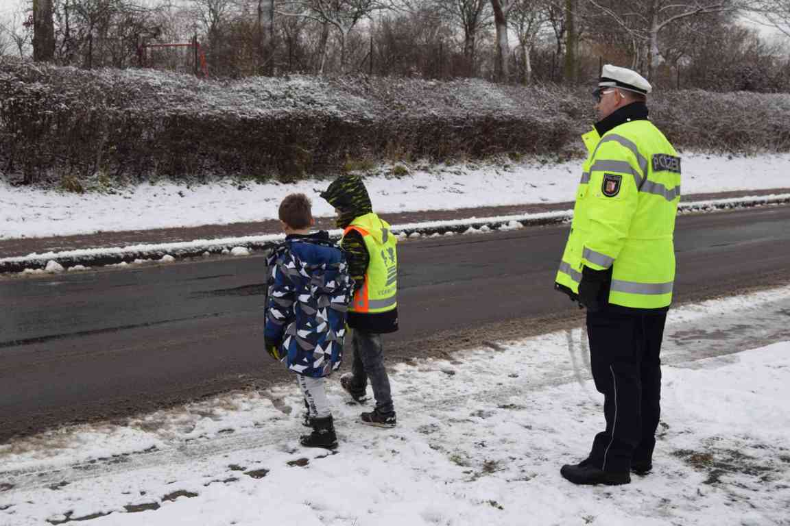 zeigte noch einmal, wie das Überqueren der Straße richtig