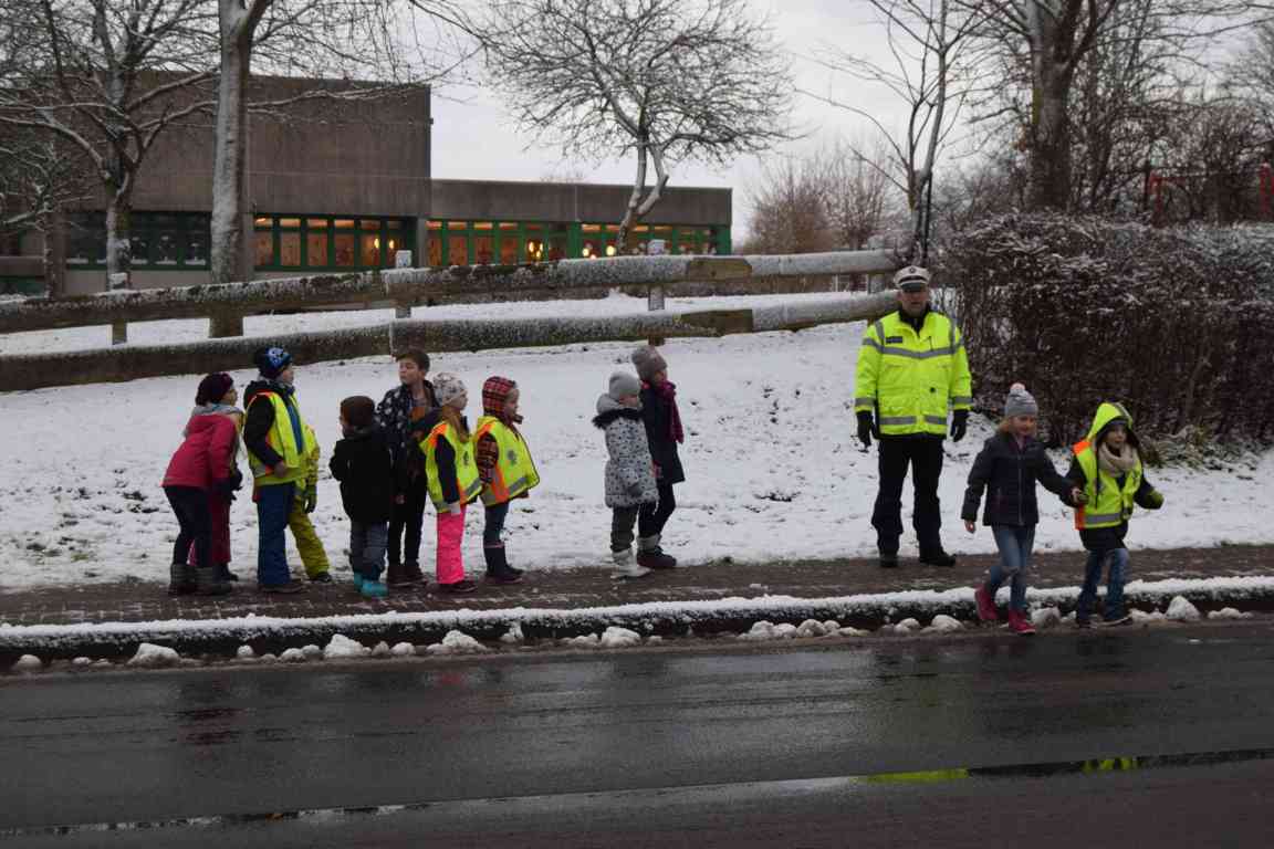 sich alle an der Straße vor der Schule und Herr Kaßmekat