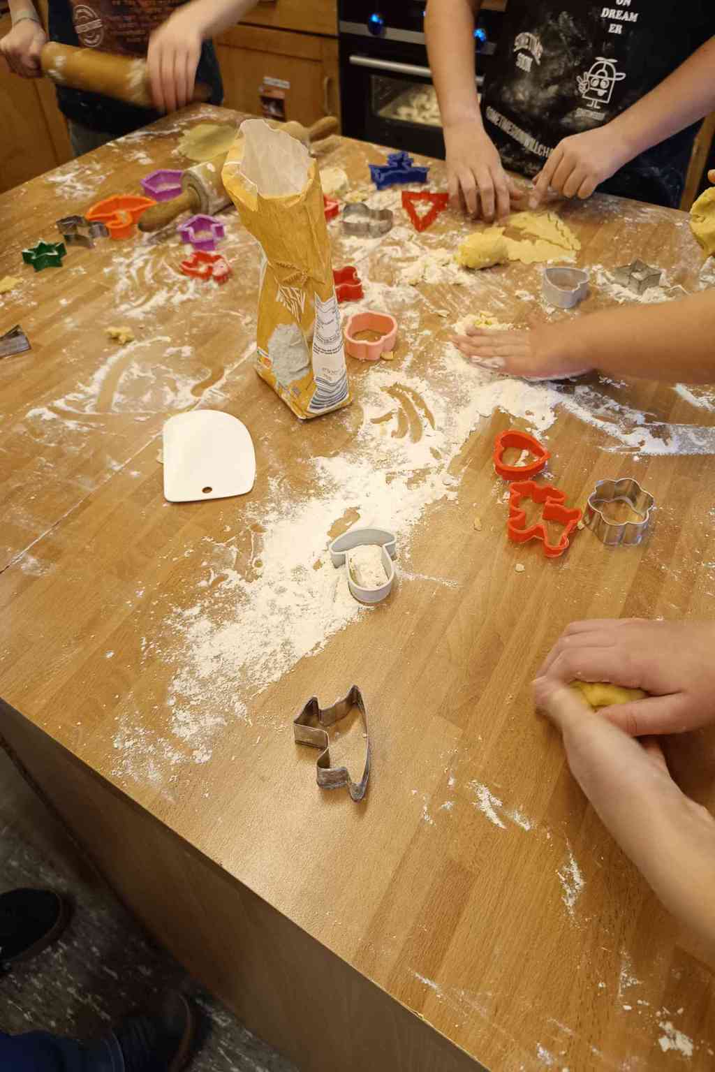 gemeinsam Teig auszurollen, verschiedenste Plätzchen