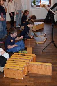 und Instrumentalisten über eine kleine Überraschungstüte,