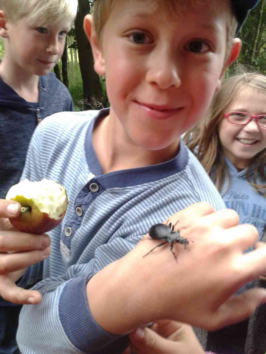 Die Klasse 2b war vorbereitet und die Kinder mit Regenzeug