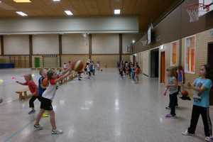 Laufübung geschult, dann übten alle Kinder das Prellen