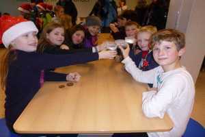 wir uns mit Kinderpunsch, Keksen und unserem Frühstück,