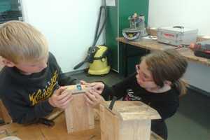 Kasten zusammen gezimmert. Das Hämmern war für die Schüler