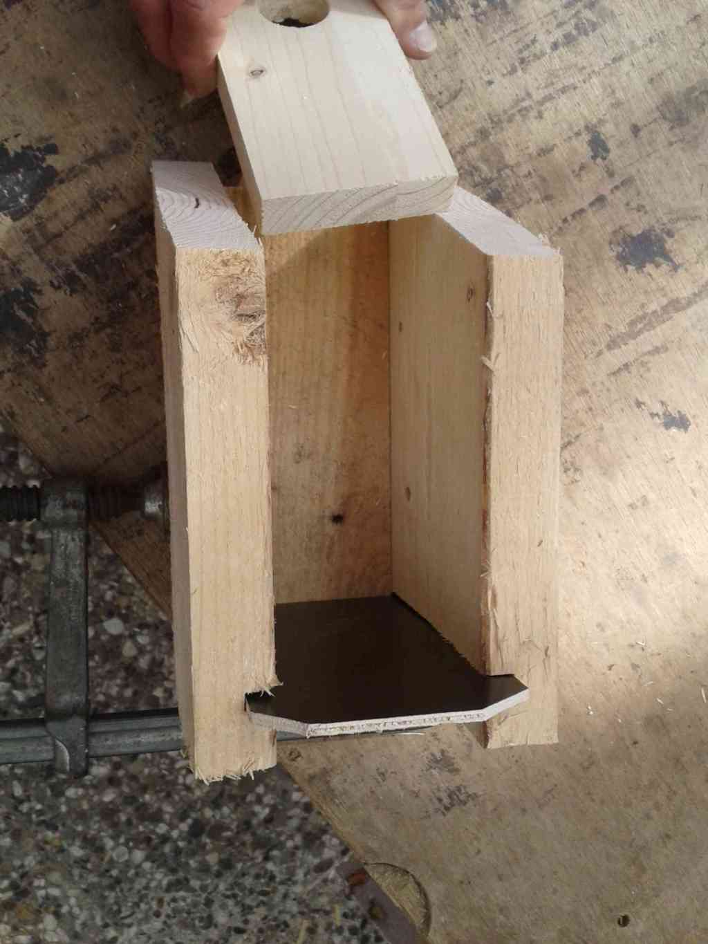 mit Einflugloch, Rückteil und Dach). Dann gab es Schleifpapier