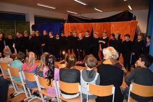 vor einem Publikum - den Klassen 3a und 3b mit ihren