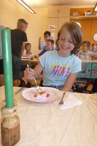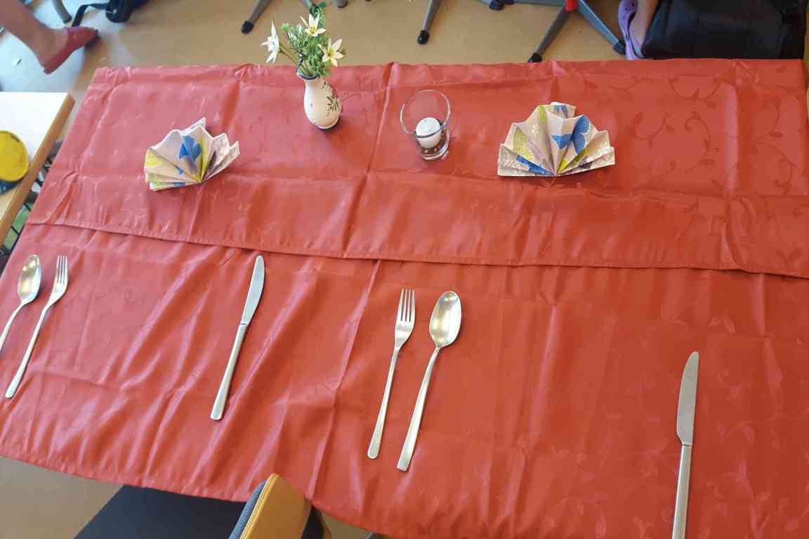eine Schülerin schnell zum Koch erklärt, das gute Geschirr