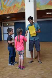 standen vor der Vollversammlung der Grundschüler und