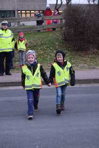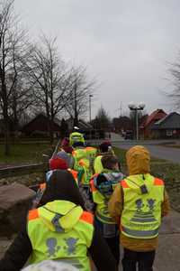 Kinder gemeinsam mit Herrn Hansen nach draußen. Mit