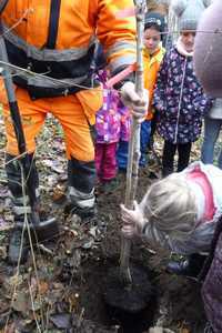 unseren Baum einpflanzen! Mit tatkräftiger Unterstützung
