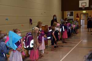 besuchten vor der Einschulungsfeier in der Schule zunä;chst