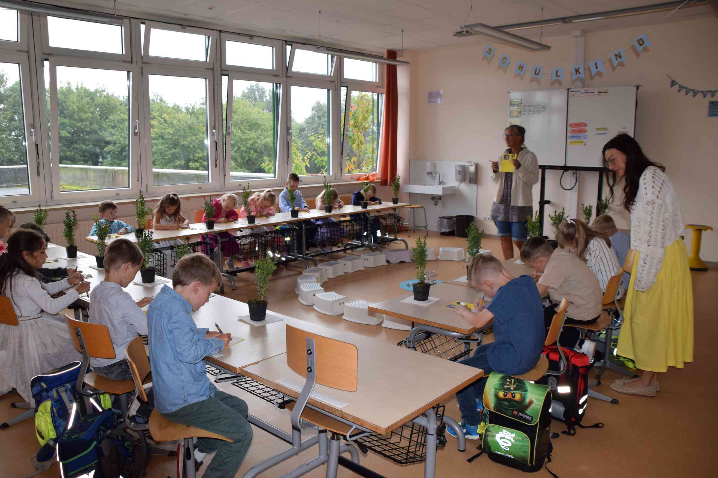 ihre Klassenlehrerin und die neuen Mitschülerinnen